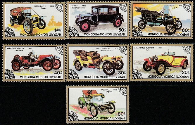 Монголия 1986 год. Старинные автомобили, 7 марок.