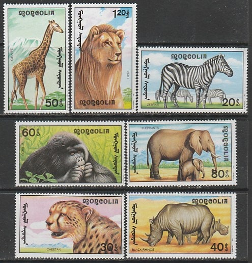 Монголия 1991 год. Африканская фауна, 7 марок.