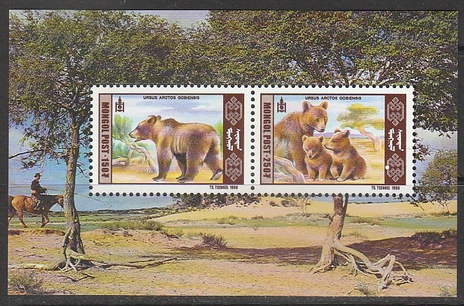 Монголия 1998 год. Гобийский медведь, блок (II)