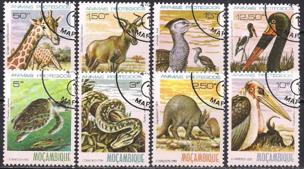 Мозамбик 1986 год. Охраняемые животные. 8 марок (гашеные)