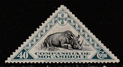 Мозамбик (Компания) 1937 год. Стандарт. Носорог, ном. 40 С, 1 марка из серии (наклейка)
