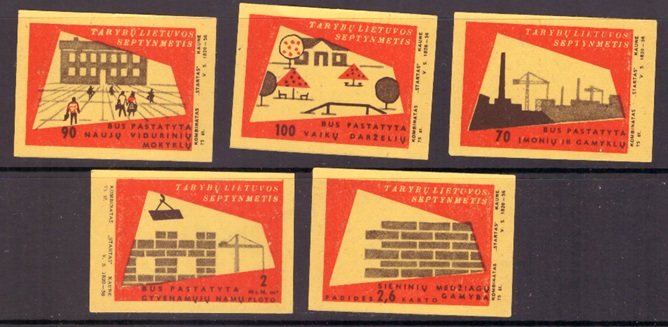 Набор иностранных спичечных этикеток. 7 год Советской Литвы, 5 штук
