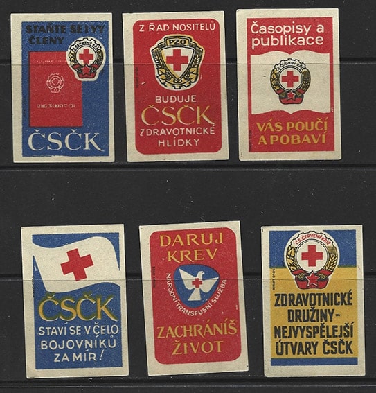 Набор иностранных спичечных этикеток. ЧССР. Красный крест, 6 штук