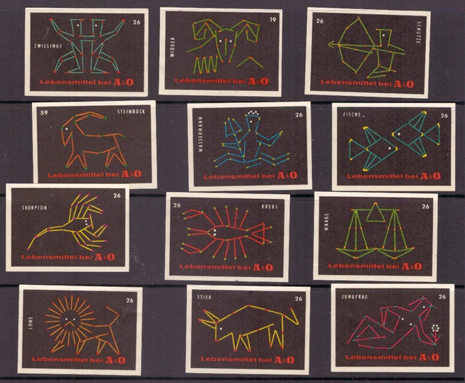 Набор иностранных спичечных этикеток. Знаки зодиака. 12 штук