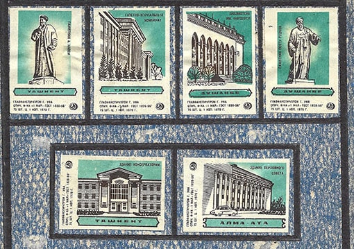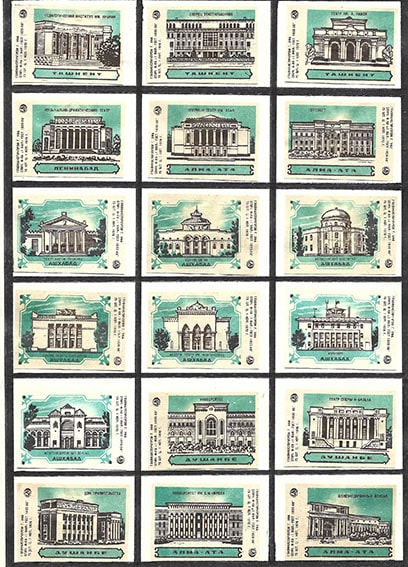 Набор спичечных этикеток. Ашхабад, Душанбе, Алма-Ата, Ташкент, Ленинабад. 1970 год. 24 шт.