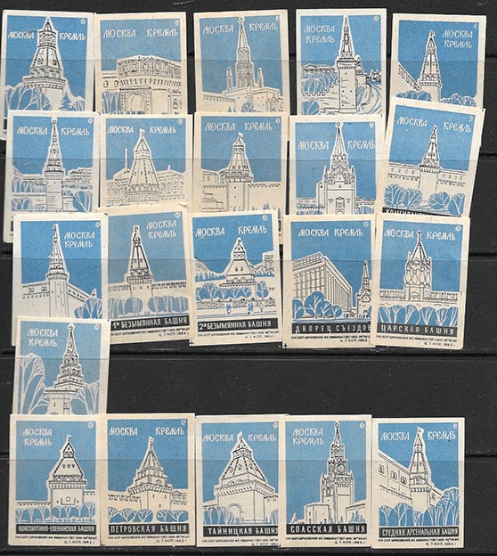 Набор спичечных этикеток. Башни Московского Кремля, 1963 год, 21 шт.