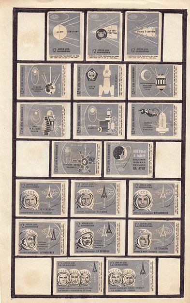 Набор спичечных этикеток. День космонавтики, 19 штук на листе