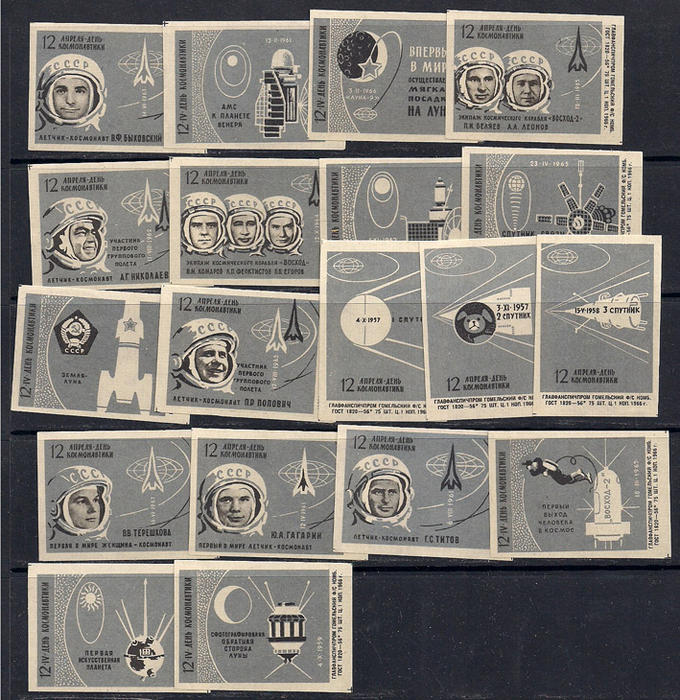 Набор спичечных этикеток. День космонавтики. 1966 г. 19 шт.