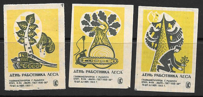 Набор спичечных этикеток. День работника леса. 1969 г. 3 штуки
