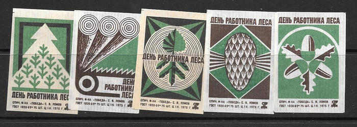 Набор спичечных этикеток. День работника леса. 5 шт. 1975 г.