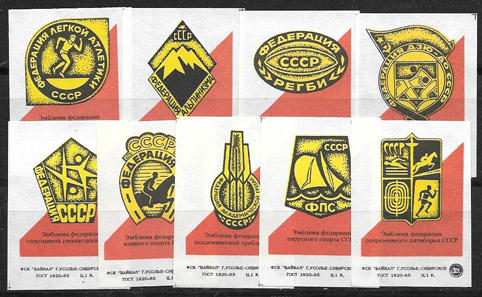 Набор спичечных этикеток. Эмблемы федераций спорта СССР. 9 шт.