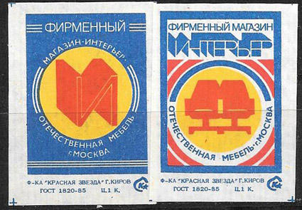 Набор спичечных этикеток. Фирменный магазин "Интерьер" г. Москва. 2 шт.