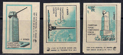 Набор спичечных этикеток. г. Брянск. Памятники. 1973 г. 3 шт.