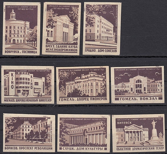 Набор спичечных этикеток. Города СССР, 1960 год, коричневые, 9 штук