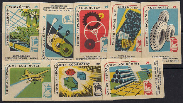 Набор спичечных этикеток. Химия - народному хозяйству. 1964 г. 8 шт.