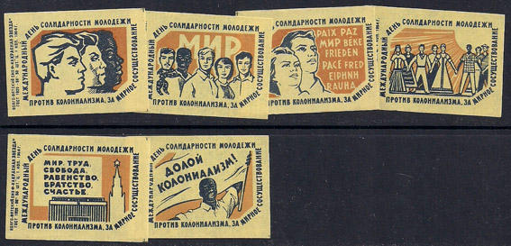Набор спичечных этикеток. Международный день солидарности молодежи. 1964 г. 6 шт.