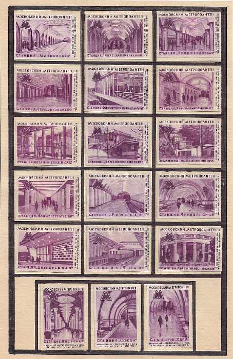 Набор спичечных этикеток. Московский метрополитен, 1966 год. 18 штук на листе