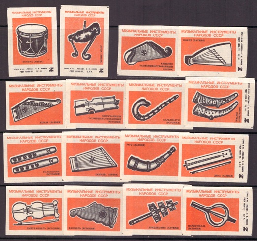 Набор спичечных этикеток. Музыкальные инструменты народо СССР, 16 штук