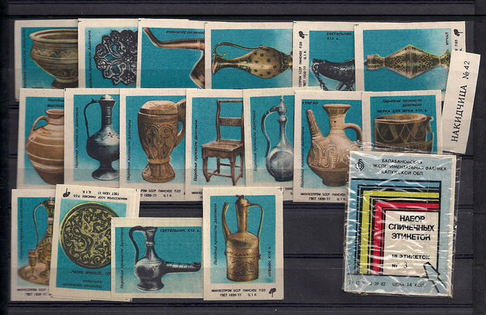 Набор спичечных этикеток № 3. Народные промыслы Дагестана. 18 шт .