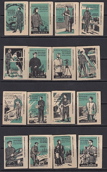 Набор спичечных этикеток. Носите рабочую одежду, 1961 год, 16 штук, бирюзовые