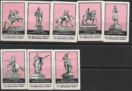 Набор спичечных этикеток. Памятники Ленинграда. 8 шт