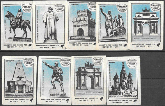 Набор спичечных этикеток. Памятники Русской славы. 1977 г. 9 шт.