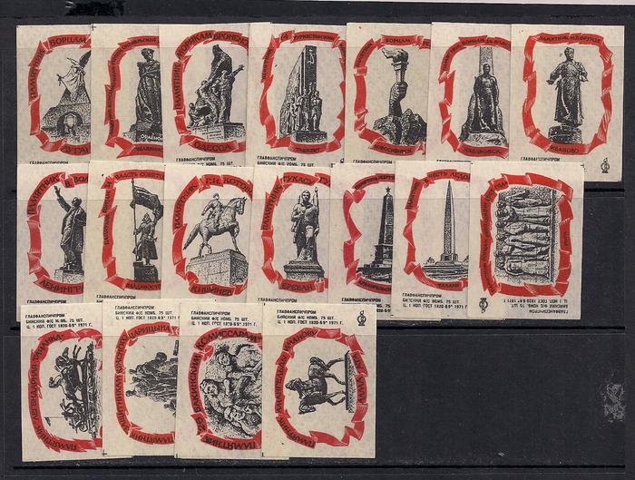 Набор спичечных этикеток. Памятники Советского Союза. 1971 г. 18 шт.