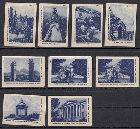 Набор спичечных этикеток. Пятигорск, синие, 1960 год, 9 штук
