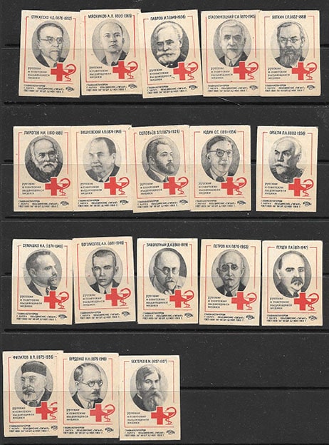 Набор спичечных этикеток. Русские и советские выдающиеся медики. 1969 год. 18 шт.