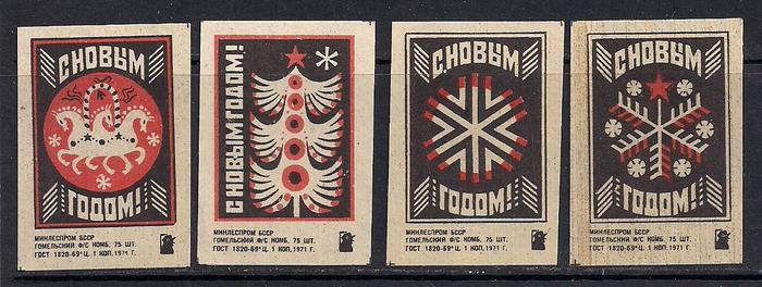 Набор спичечных этикеток. С Новым Годом! 1971 г. 4 шт.