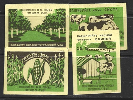 Набор спичечных этикеток. Сельское хозяйство. Победа. 1958 год. 4 шт