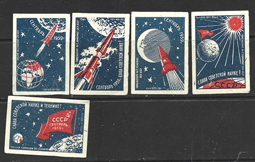 Набор спичечных этикеток. Слава советской науке! Сентябрь 1959 год. 5 шт.