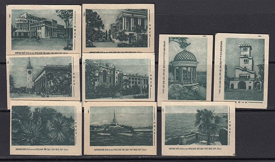 Набор спичечных этикеток. Сочи, 1960 год, зеленые, 9 штук
