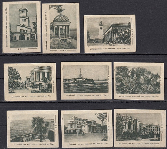 Набор спичечных этикеток. Сочи, серые, 1960 год, 9 штук