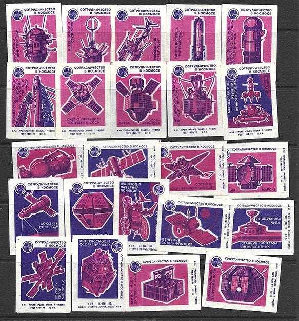 Набор спичечных этикеток. Сотрудничество в космосе. Интеркосмос. 23 шт. 1979 год