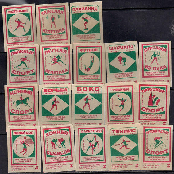 Набор спичечных этикеток. Спорт. 1970 г. 18 шт.