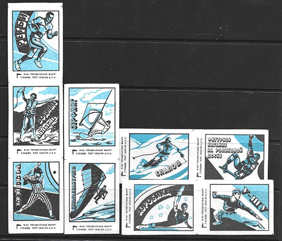 Набор спичечных этикеток. Спорт, выпуск 1. Фабрика "Пролетарское Знамя". 1991 год