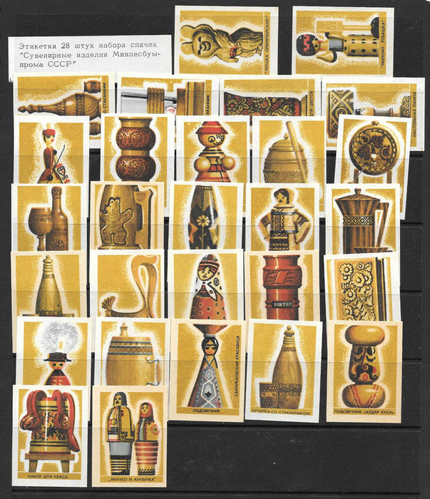 Набор спичечных этикеток. Сувенирные изделия Минлесбумпрома СССР. 28 шт.