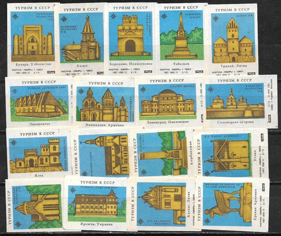 Набор спичечных этикеток. Туризм в СССР. 17 шт