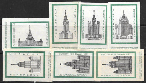 Набор спичечных этикеток. Высотные здания СССР. 7 шт.
