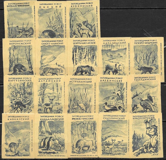 Набор спичечных этикеток. Заповедники РСФСР. 1962 год. 18 шт.