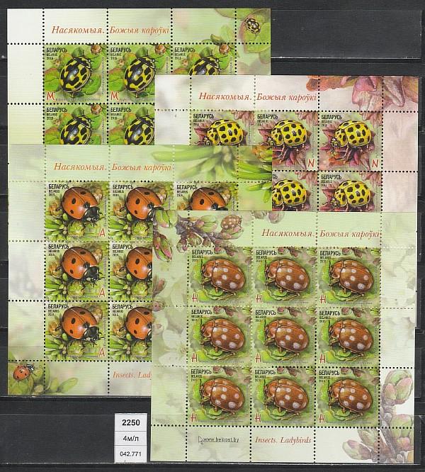 Насекомые, Божьи Коровки, Беларусь 2015 г, 4 малых листа