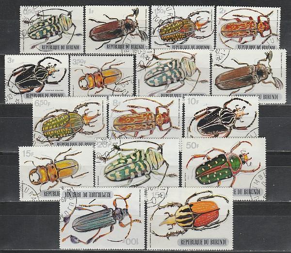 Насекомые, Жуки, Бурунди 1970 год, 16 гашёных марок.
