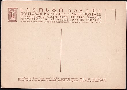 Немаркированная ПК "Илл. к поэме Ш. Руставели "Витязь в тигровой шкуре (всадник)". Выпуск 1941 год