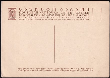 Немаркированная ПК "Илл. к поэме Ш. Руставели "Витязь в тигровой шкуре". Выпуск 1941 год