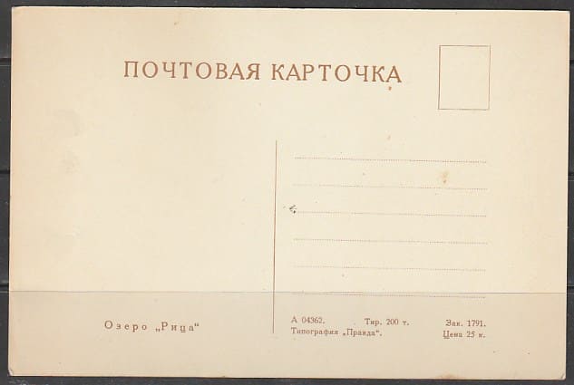 Немаркированная ПК. Озеро Рица, 1962 год.