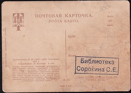 Немаркированная ПК Прянишников И.М. Порожняки. Выпуск 1930 год (надпечатка личной библиотеки)