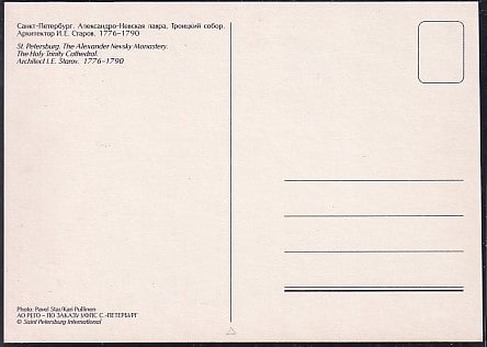 Немаркированная ПК Санкт-Петербург. Александро-Невская лавра. Троицкий собор