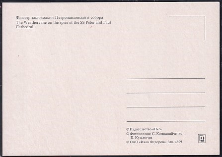 Немаркированная ПК Санкт-Петербург. Флюгер колокольни Петропавловского собора (изд. П-2)