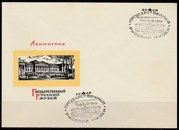 Немаркированный конверт. Ленинград. Русский музей, СГ первого дня, 25.12.1968 год, Ленинград, почтамт